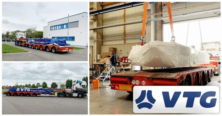 The largest package – a 50 tonnes machine bed – was transported by an open special truck and then shipped…