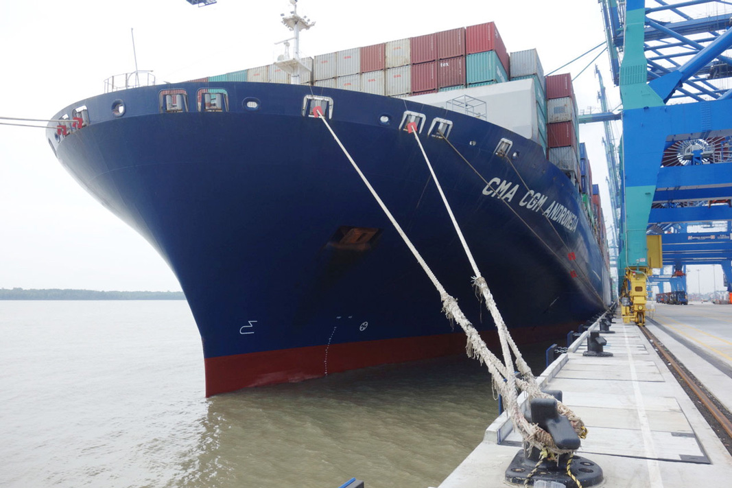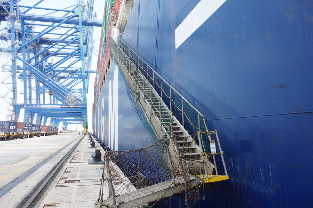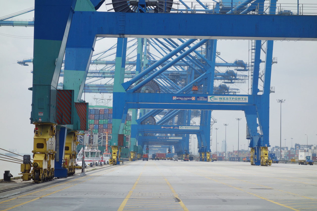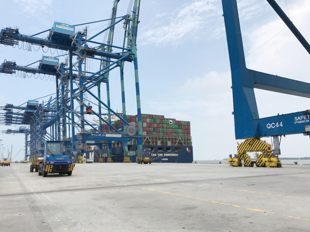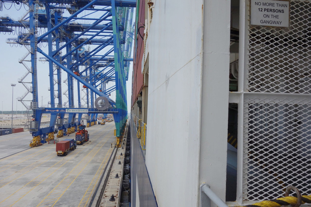 More photos from Bo’s Port Kelang visit Pictured: mv CMA CGM Andromeda alongside in Westport Kelang, Malaysia, Bo on the wing leaving Westport, Sailing in the Indian Ocean towards Straits of Malacca, container operations, 5km quay with STS cranes.