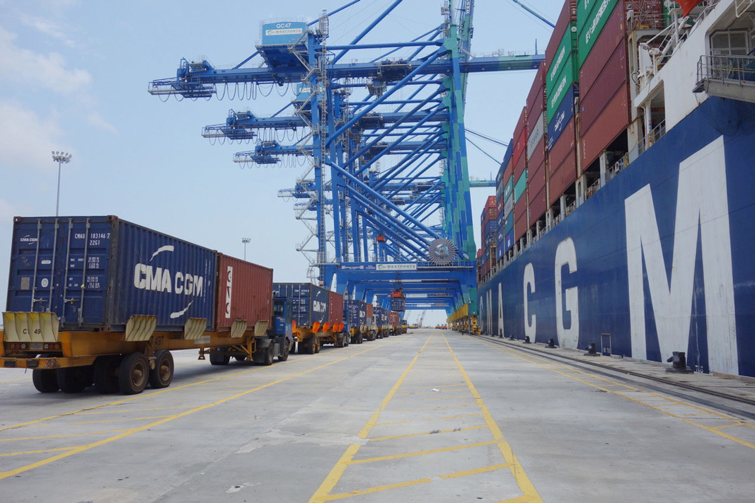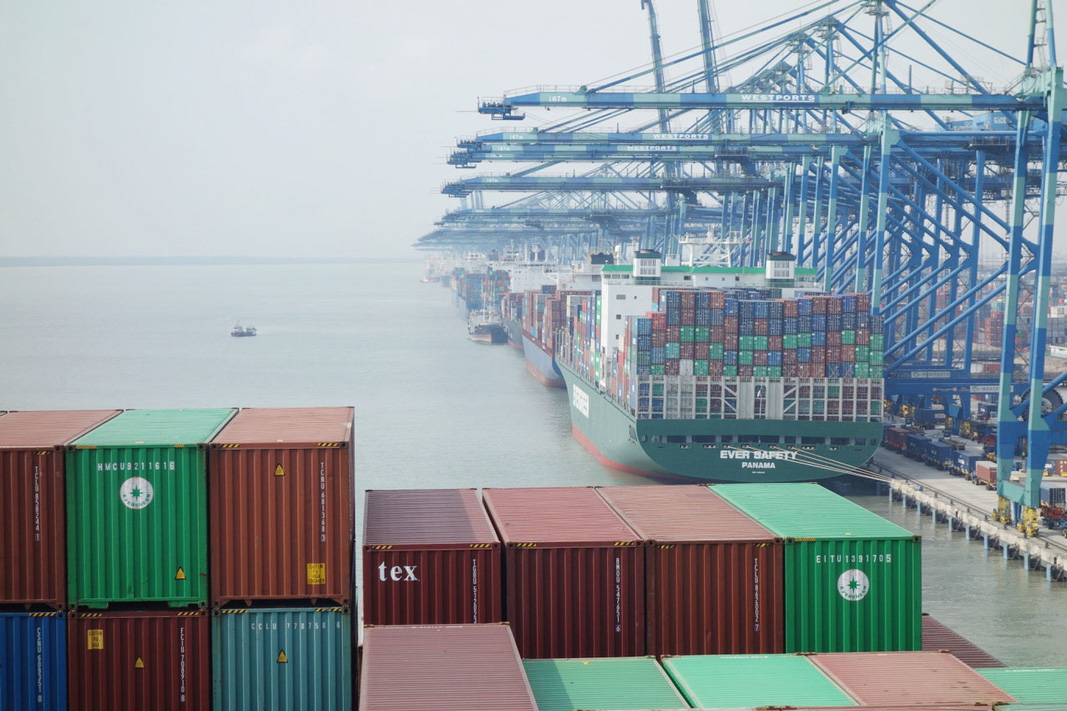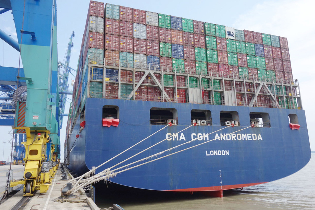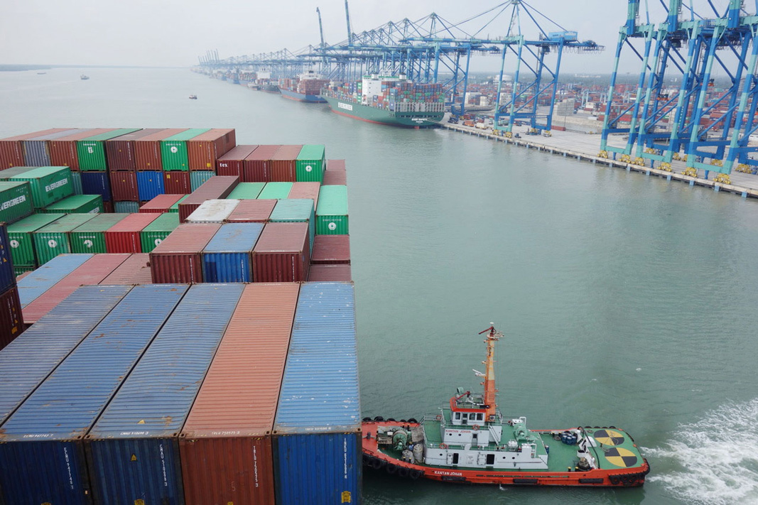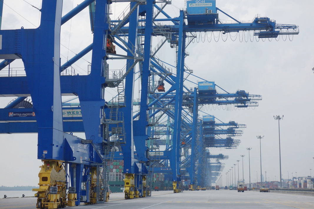 More photos from Bo’s Port Kelang visit Pictured: mv CMA CGM Andromeda alongside in Westport Kelang, Malaysia, Bo on the wing leaving Westport, Sailing in the Indian Ocean towards Straits of Malacca, container operations, 5km quay with STS cranes.